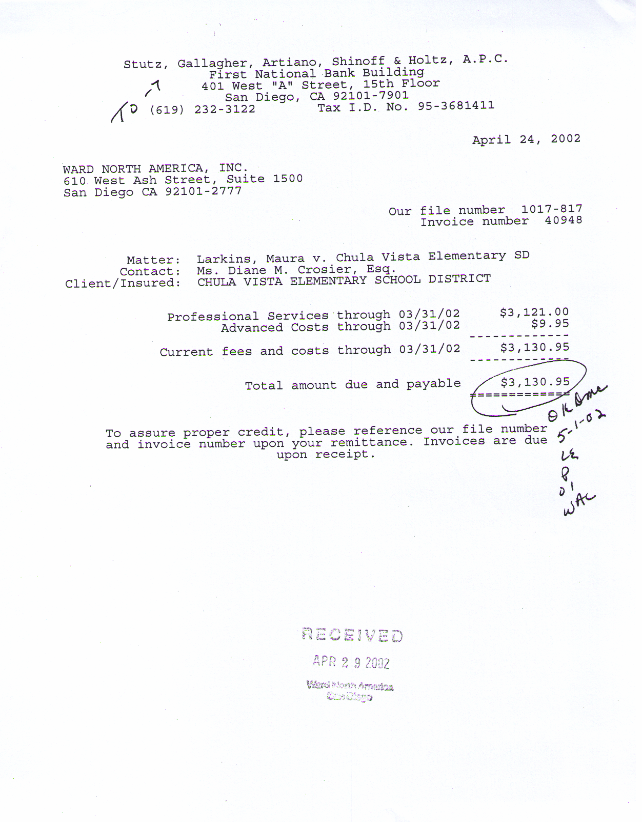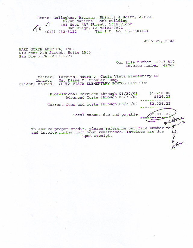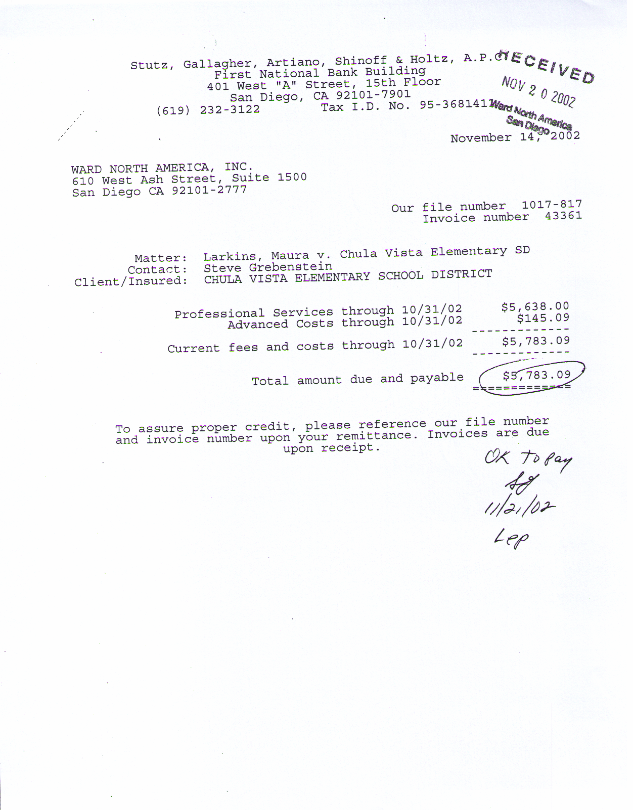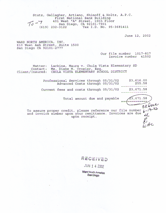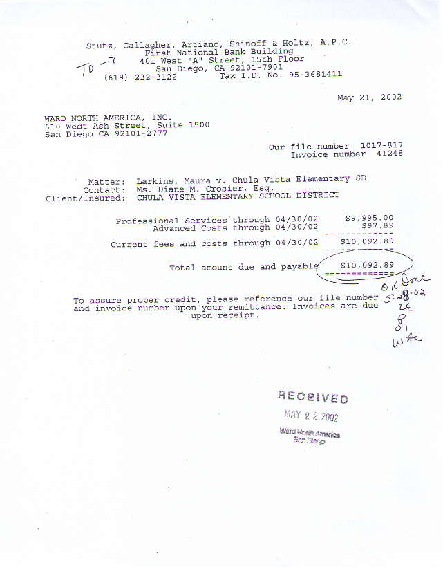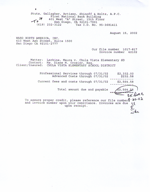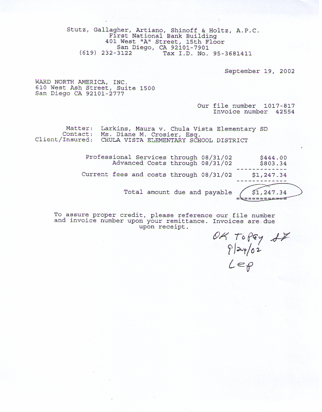 Amounts charged to SDCOE-JPA in the case of Maura Larkins v. Richard