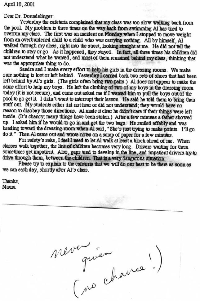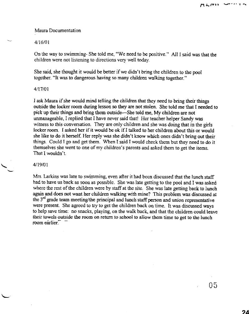 Below is a letter to principal Gretchen Donndelinger from Maura Larkins which CVESD did NOT submit to OAH.