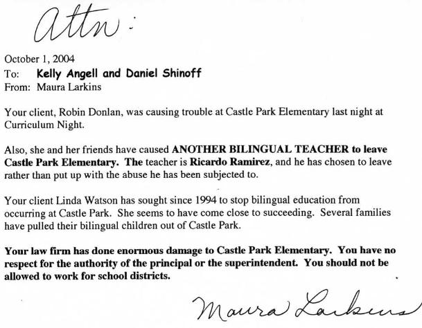 Park Elementary Site Council meetings in an apparent effort to intimidate the principal. How