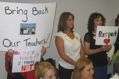 | Castle Park teachers tell their story By Luis Alonso Pérez The first day of classes at Castle Park Elementary did not start as in previous years. This year the children were met with a group of parents and teachers protesting with signs outside his school, against the unexpected change in stock of a group of teachers for several years working for the primary. Some children wore stickers on their clothes with the word "Respect". When Tom arrived assistant inspector-Cruz district are upset and asked the demonstrators not to involve children, that this problem had nothing to do with children. But for Peggy Myers - One of the primary teachers reassigned to another-this has to do directly with children, their nine years of effort as a teacher at Castle Park have been for the children and the community. Now, Peggy Myers is responsible for a fifth of primary school classroom Elementary School in Allen, but still believes that his hand was totally unjustified and is still angry at the way in which this situation took place, especially the way which he learned of his transfer. Last August, Myers was vacationing in London, taking the opportunity of seeing her husband for five days, which is assigned by the military with a base in Saudi Arabia, where he received a call from his son Greg, who had been informed Tom Cross reported that he wanted to talk to her as soon as it becomes home. In the days following Greg received calls saying that other teachers had spoken to Cruz and Lowell Billings-Inspector of the district and had been transferred to other primaries. Upon hearing, Myers was totally baffled because it never expected. The news obviously ruined your holiday. But Peggy Myers was not the only teacher surprised by the news. Stephenie Petti, third grade bilingual teacher received a call from Tom Cruz the August 16, in which he reported on a reunion on August 18 to discuss problems that arose last year in PA and analyze his subject for the school year entrant. His first impression was that this is a witch hunt to get rid of teachers who were causing problems at Castle Park. For the day of the appointment, Petti was so stressed out that began to show symptoms of pregnancy complications. I could not sleep and suffered panic attacks. The day of the event was the surprise of the next school year was not going to teach at Castle Park, which had been assigned to Salt Creek Elementary and was not going to have a bilingual group. The news shocked to the point where they began having contractions at the time of delivery, resulting in a week that I had to go to hospital because of physical and emotional problems. When teachers asked why the transfer response was simple: The changes were made "for the benefit of the educational program and students." Hearing this Peggy Myers asked how it would benefit the program or students transferring to a single member of the team at Castle Park which had developed a curriculum different from the traditional program? Lowell Billings, did not reply. When asked how to transfer a teacher to teach other teachers how to teach USD a bilingual groups would benefit? Billings did not reply again. Stephenie Petti can not begin to teach this school year, because it is disabled by her pregnancy. Return to work as a teacher when your baby is born in January or February. Myers and the rest of the teachers believe that the real reason for his departure from Castle Park because he was not afraid to show their dissatisfaction with the way the director Ollie Matos led the primary school. "I am prepared to defend what I believe is right and criticize what I believe is wrong, says Petti-I care students and the educational programs of Castle Park. I have a deep interest in their welfare, academic progress and their personal lives. Families (community) are my family, your children are my children. " "I am not afraid of the administration, he added, Petti-we have had many directors who come to Castle Park and try to change the programs we have developed. Then they leave, and teachers are responsible for repairing damage caused by a bad director. They come and go, but teachers are. " "I am amply qualified to do my job, perhaps the director felt intimidated by me and my colleagues," said Petti. "A couple of years," says Peggy-Myers had a very good leader as director, which sought the strengths of each teacher and encouraged, so the results of our tests were higher than had Castle Park. Since the entry of Ollie Matos, who has been a very weak leader, student behavior is at its worst and staff morale is at its lowest point. " "The problem is not the five teachers at Castle Park," added Meyers, the problem is that if Lowell Billing allows the transfer of teachers simply because managers can not work with them, then all the teachers in this district are at risk of being transferred for speaking for the welfare of children and the community. " "Parents need to know the community have the right to show their dissatisfaction with the decisions of managers believe that if their children do not benefit," said Petti, need to know that their voices have value, that their views count and which has the power to change things in the primaries and the school district. Teachers and district employees are working for families in the community. Parents should know and believe this." |