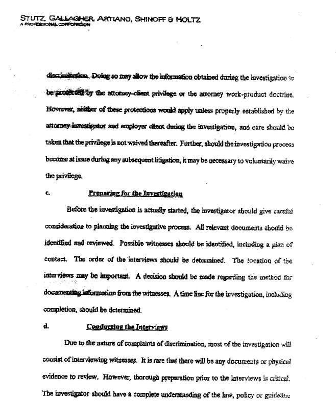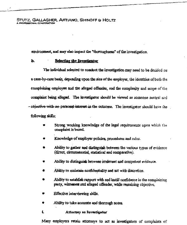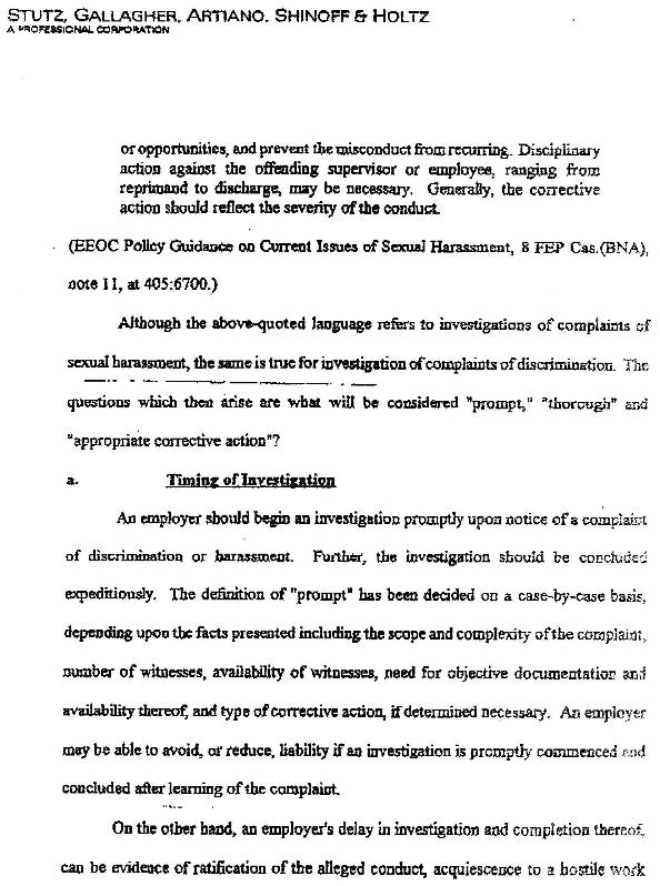 | TIMING OF INVESTIGATION "An employer should begin an investigation promptly upon notice of a complaint of discrimination or harassment." |