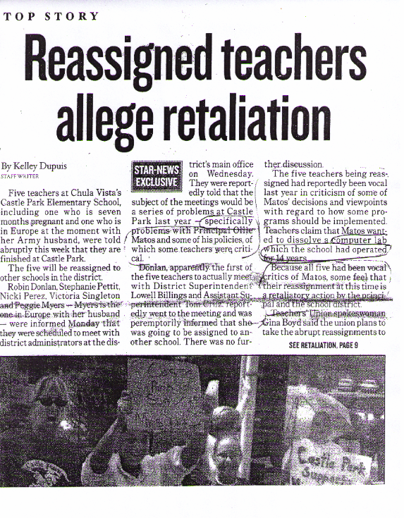 | La Prensa Sept. 17, 2004 School Board Demonstration by five transferred teachers |