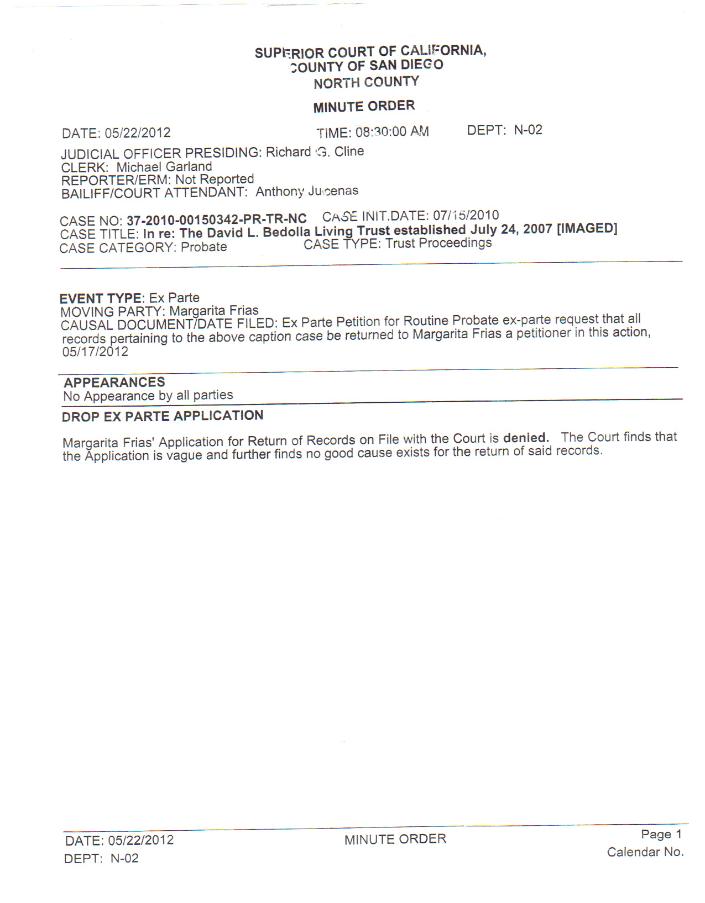 | Quigley v. Toler Filed 3/2/10 Quigley v. Toler CA4/1 NOT TO BE PUBLISHED IN OFFICIAL REPORTS COURT OF APPEAL, FOURTH APPELLATE DISTRICT, DIVISION ONE STATE OF CALIFORNIA LAWRENCE C. QUIGLEY et al., Plaintiffs and Respondents, v. CLARICE DOLLY TOLER, Defendant and Appellant. D054564 (Super. Ct. No. PN28574) APPEAL from a judgment of the Superior Court of San Diego County, Richard G. Cline, Judge. Reversed. Robert and Helene Quigley established a family trust providing that upon the surviving spouse's death, the trust assets would be distributed equally to their three adult children, Lawrence Quigley, Phillip Quigley and Clarice Dolly Toler (Dolly).[1] Several years after both parents died, the Brothers, who were the successor cotrustees, obtained a judgment that Dolly violated the trust's no contest clause and forfeited her one-third interest in the trust based on her answer to the Brothers' unlawful detainer complaint. Dolly appeals. We reverse. The language of the no contest clause does not reflect an intent to disinherit a beneficiary based on the filing of this defensive pleading under the particular circumstances of this case. FACTUAL AND PROCEDURAL BACKGROUND In 1992, Mother and Father created a trust (Family Trust), the principal asset of which was a residence in Encinitas (the Encinitas home). Under the trust provisions, the trust was irrevocable upon the death of the first spouse. Mother and Father designated the Brothers as successor cotrustees, and their three adult children as equal remainder beneficiaries. Specifically, the Family Trust stated that "[o]n the death of the surviving Trustor, the Trust shall terminate and the Trustee shall, as soon as reasonably possible, divide the net income and principal remaining in the Trust into three (3) equal shares and distribute them to the [three children]." Section 8.04 of the Trust gave the cotrustees "absolute discretion" in determining the appropriate manner in which to equally divide the assets.[2] The Family Trust also contained a no contest clause, which provided that a beneficiary "absolutely forfeit[s]" any benefits under the trust if the beneficiary "asserts any claim (except a legally enforceable debt), statutory election, or other right or interest against or in Trustor's estate . . . , other than pursuant to the express terms [of the Trust]. . . , or directly or indirectly contests, disputes, or calls into question, before any court, the validity of any provisions of this instrument . . . ."[3] Father died in 1999. In December 2000, the Brothers and Dolly agreed that Dolly would move into the Encinitas home and serve as the primary caretaker for Mother, who was in declining health. For the next five years, Dolly cared for Mother until her death in April 2005. Shortly after Mother's death, Dolly told the Brothers she would like to purchase the home and to continue living there. Although initially receptive to this idea, the Brothers soon stated a preference for selling the house to a third party and then dividing the assets of the sale. They told Dolly to immediately move out of the property and to contact them only through their attorney. About six weeks after Mother's death, Dolly's counsel (Susan Stricklin Wilson) and the Brothers' counsel (Boris Siegel) had a lengthy discussion about Dolly's desire to purchase the home and discussed terms of a potential sale. Several days later, a second law firm retained by the Brothers (Kimball, Tirey & St. John) served Dolly with a 60-day notice to terminate her tenancy in the home. In response, Wilson wrote to Siegel stating that "given the positive tenor of our telephone discussion last week, I was surprised" to learn about the notice. In a responsive letter, Siegel said he had been unaware the notice was going to be served, but stated that the Brothers intended to institute unlawful detainer proceedings if the siblings did not reach a prompt sales agreement and the Brothers did not intend to abate the eviction process during the negotiations. Siegel also said he agreed with Dolly's attorney "that the probate court is the court of proper jurisdiction" for an unlawful detainer action, and that he "would be willing to enter into a stipulation with you to have any unlawful detainer proceeding heard [in the probate court] . . . ." Siegel also said that time was of the essence with respect to the sale, and the Brothers did not want to list the house for sale until Dolly moved out of the home. The next day, on June 17, 2005, Dolly's attorney sent Siegel an offer to purchase the house. During the next several weeks, the parties (through their counsel) engaged in written negotiations over the price and terms of the purchase offer. In mid-July, Siegel suggested the parties engage in a mediation before retired Superior Court Judge David Moon as "part of a global settlement of all claims between the parties," including the disposition of the Encinitas property. Dolly's counsel agreed that Judge Moon would be an "excellent mediator" to "expedite resolution of this matter." For reasons not apparent in the record, the communication between the parties stopped at this point, and on August 15, 2005, the Brothers filed an unlawful detainer complaint against Dolly in superior court. The complaint was a form pleading filed by the Brothers' second law firm (Kimball, Tirey & St. John), and provided no indication of the nature of the dispute between the Brothers and Dolly, or the reason that Dolly was living in the home at the time. Under applicable statutes, a party must file a response to an unlawful detainer complaint within five days. (Code Civ. Proc., 1167, 1167.3.) Four days later, on August 19, Dolly filed a safe harbor petition in the probate court requesting a ruling on whether a proposed petition seeking to partition the property and compel the Brothers to sell her the Encinitas home constituted a "contest" under the Family Trust. (Prob. Code, 21320.) In the proposed petition, Dolly sought 