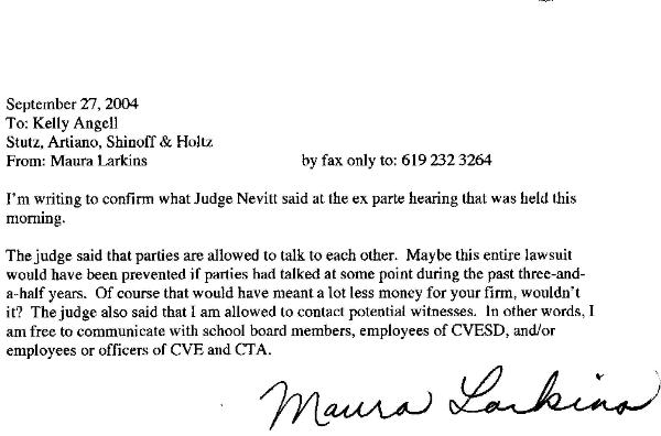 | Documents in Larkins v. CVESD (CVESD hired Stutz law firm to represent the interests of those who engaged in illegal actions) |