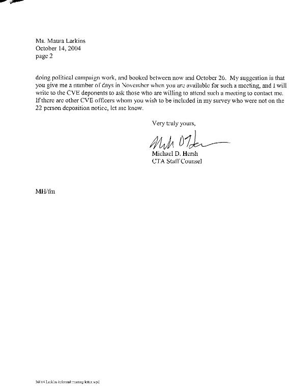 | Mr. Hersh and his boss, CTA head counsel Beverly Tucker, clearly feel that they are above the law. When CTA became a defendant in the case, CTA continued to maintain that no subpoena could compel any teachers union employee to testify about the union. |