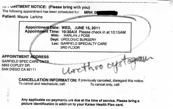 Maura Larkins' VCUG appointment was on June 15, 2011, not
